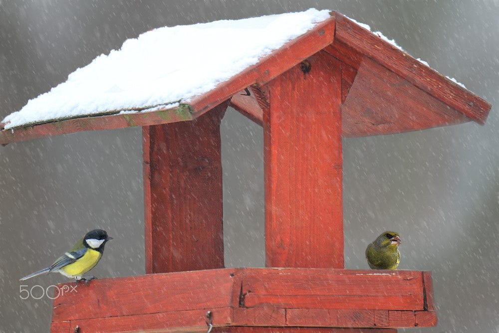And on the third day, as the skies loomed white-dark and the winds bellowed from the north, a new bucket was hung. Azure as the summer sky, with garish patterns that made a mockery of bluebirds, it held the tribute due to the conclave: millet and sunflower and rye, cracked corn and peanuts. The golden fields of summer couldn’t produce such bounty as now burgeoned before the flocking multitudes.